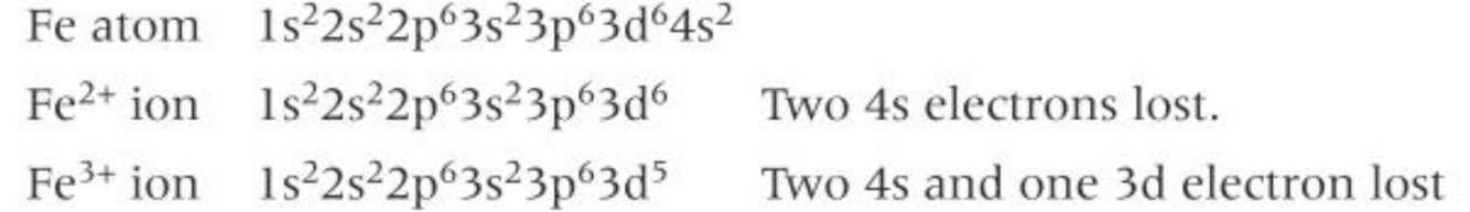 Iron can form Fe2+ and Fe3+ ions
