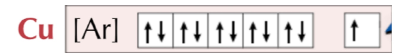 Draw electron configurations of chromium and copper