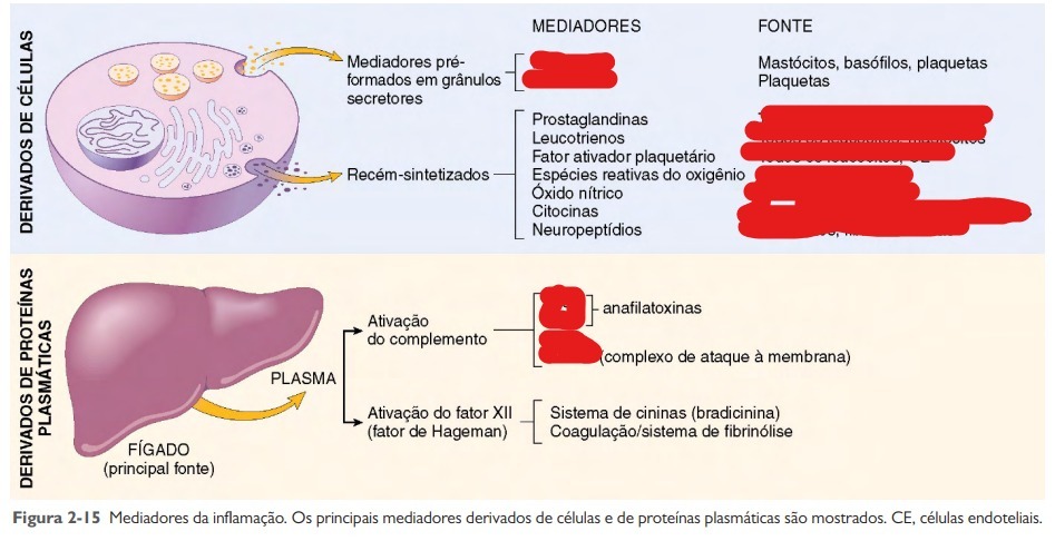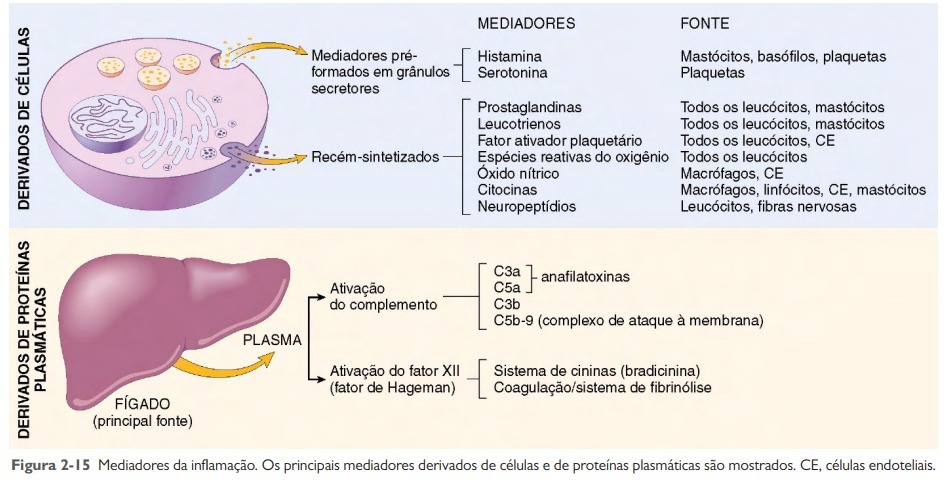 Podem ser derivados da célula. Nesse caso, podem já ter sido sintetizados anteriormente e são apenas liberado dos grânulos(serotonina e histamina), ou podem ser sintetizados a partir da demanda( leucortrienos, prostaglandinas, PAF, NO, citocinas, etc)