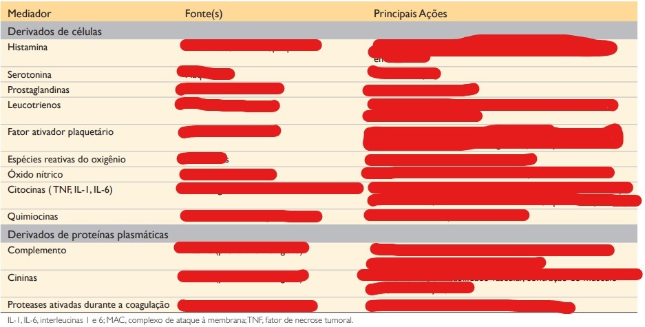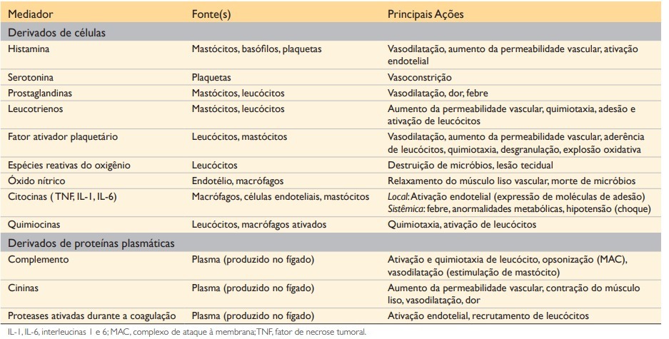 Propriedades dos mediadores inflamatórios quanto à ativação de células e degradação