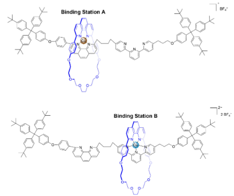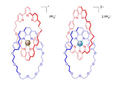 What is the difference in binding for the copper(I) vs copper(II) metls in [2]catenate