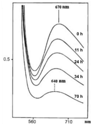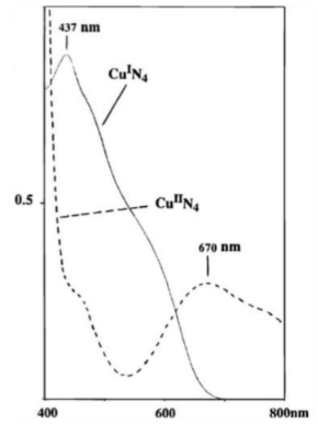 Overtime the absorption at 670 nm from Cu¹¹N₄ is found to change