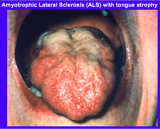 Progressive bulbar palsy affects primarily the muscles innervated by the medulla (form bulb or medulla in French) neurons , causing tongue and palate weakness. Patients with Progressive Bulbar Palsy may later develop classical ALS.