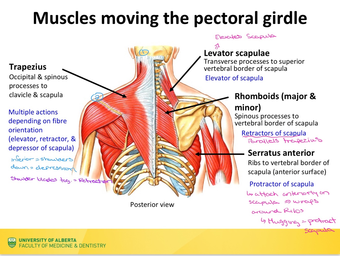 Depresses and protracts the scapula; elevates the ribs (breathing)