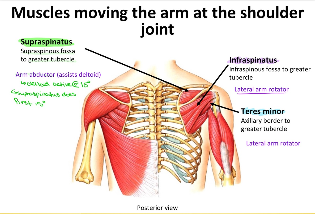 The infraspinatus muscle and teres minor are both lateral arm rotators