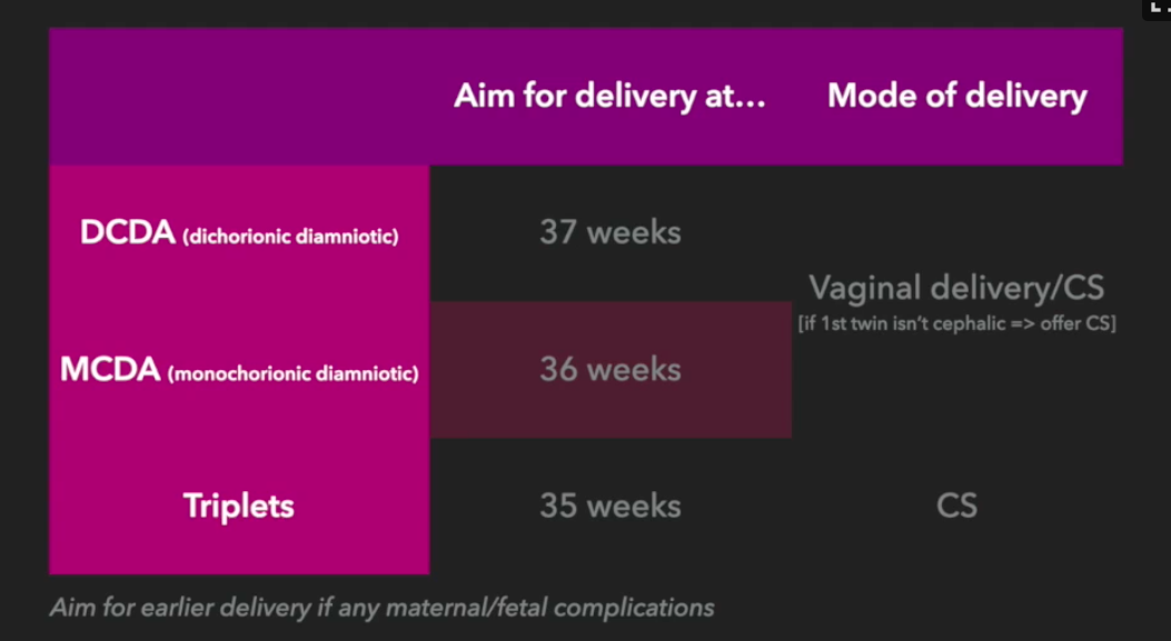 when should you aim for delivery in the different types of pregnancies?