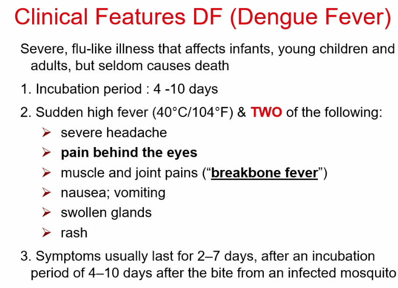 the clinical features of DF begins with a sudden high fever (40 C, 104 F)