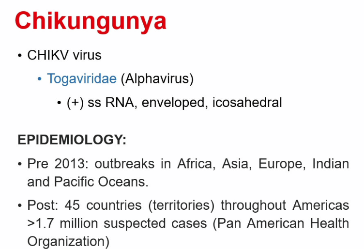 Chikungunya is part of the Togaviridae family of viruses