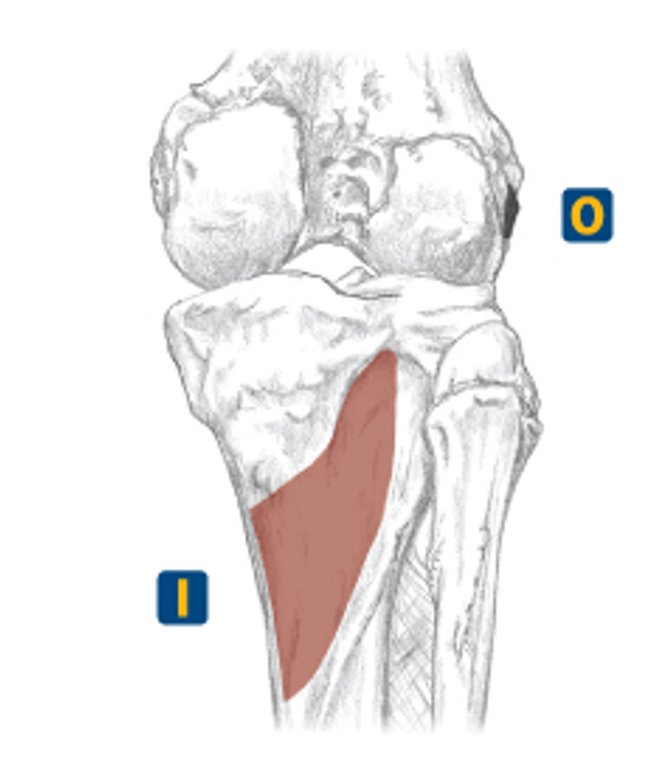 Origin: Lateral condyle of tibia; proximal lateral surface of tibia and interosseous membrane
