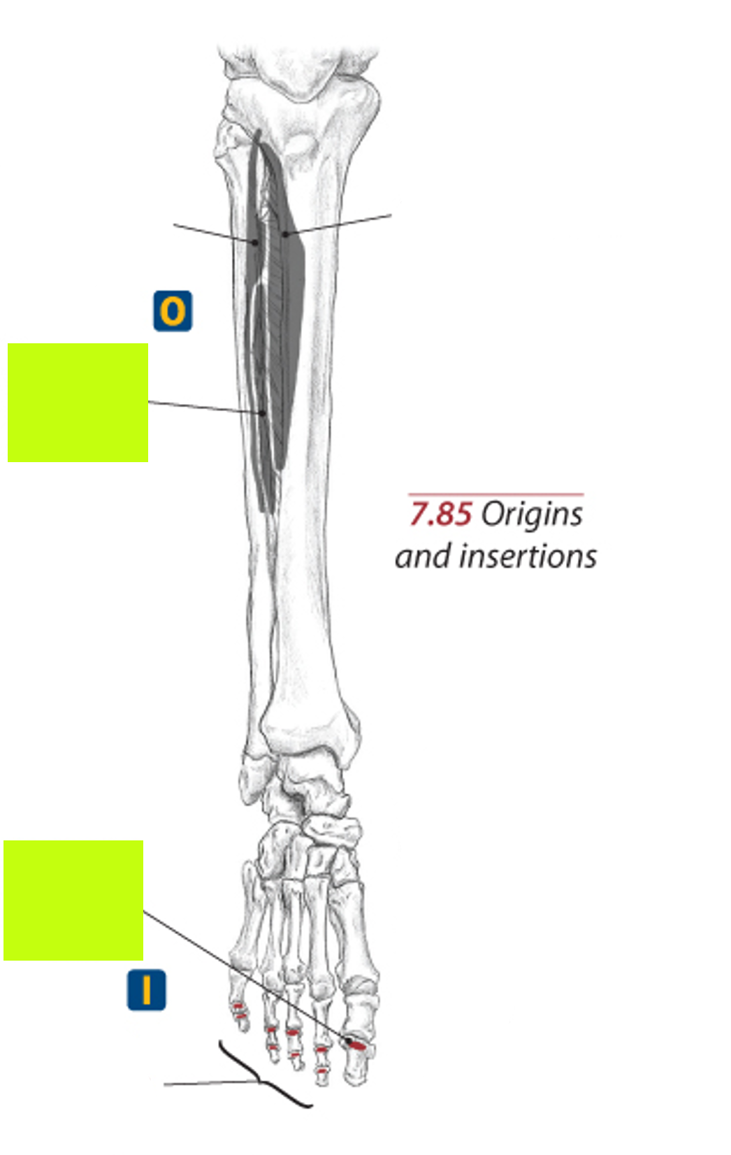 Origin: Lateral condyle of tibia; proximal anterior shaft of fibula and interosseous membrane