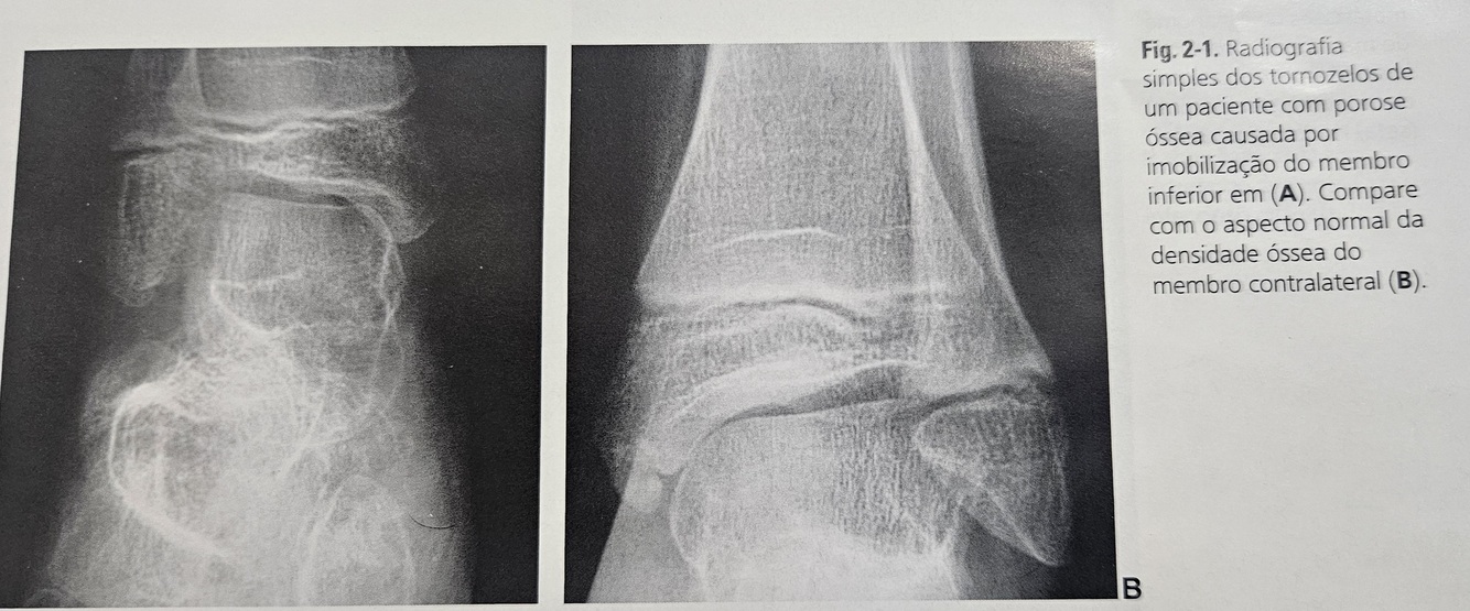 Se apresenta mais radiotransparente que um osso com mineralização normal.