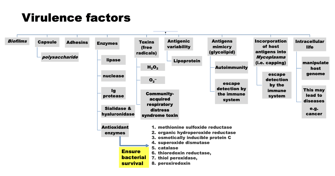 List the virulence factors of Mycoplasma