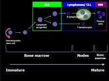 Myeloma is diagnosed by finding excess plasma cells in the bone marrow. Plasma cells must comprise > 10% of total bone marrow cell population.