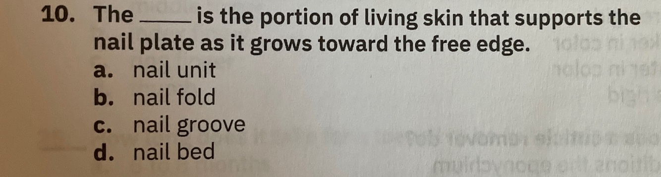 Nails - Ch. 4 - Nail Structure, Disorders, and Diseases Flashcards