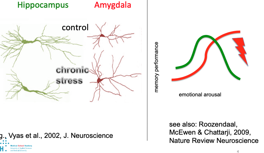 heißes Gedächtnis: limbische Strukturen (Amygdala) -> bei chronischem Stress entstehen mehr Vernetzungen