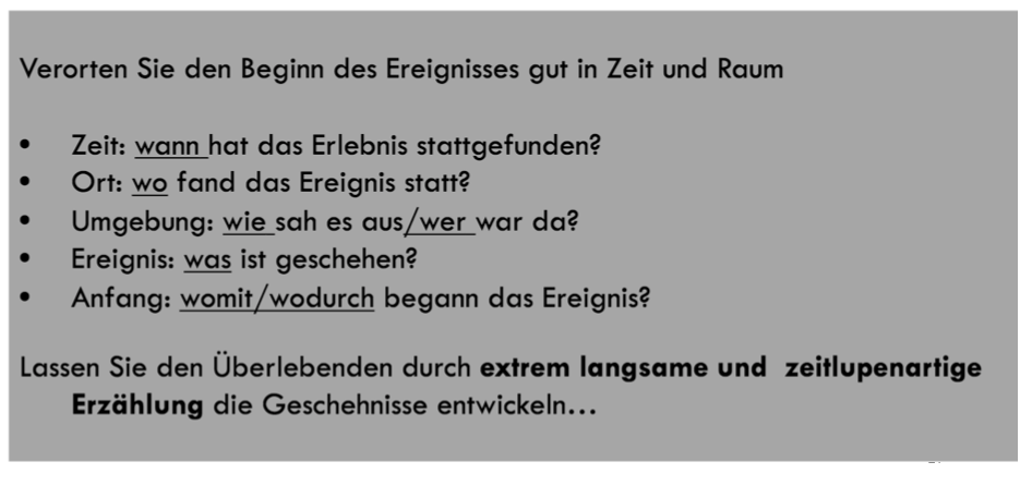 • EineAktivierungderTraumatasolltevermiedenwerden àBezug zum Hier und Jetzt herstellen