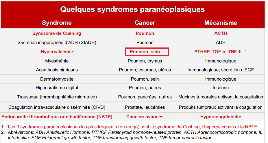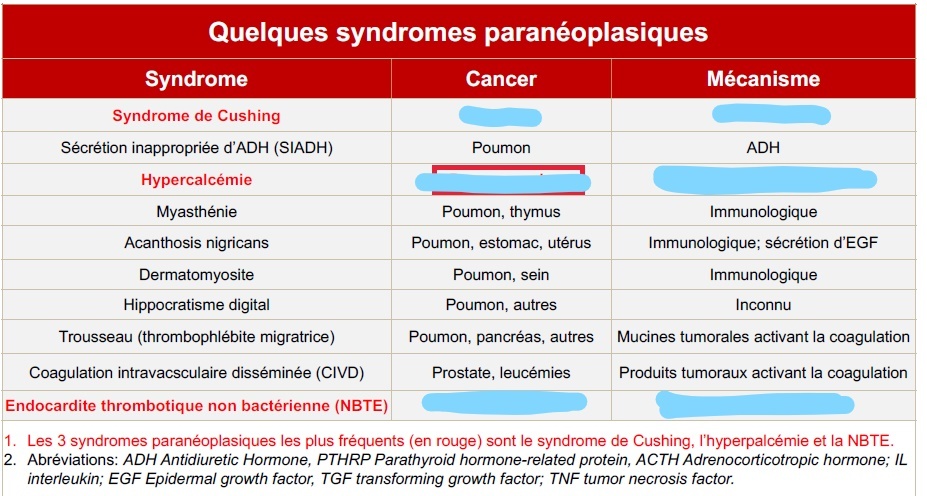 Nommer les cancers et les mécanismes impliqués avec les syndromes paranéoplasiques du tableau (EXAMEN CE QUI EST EN ROUGE)