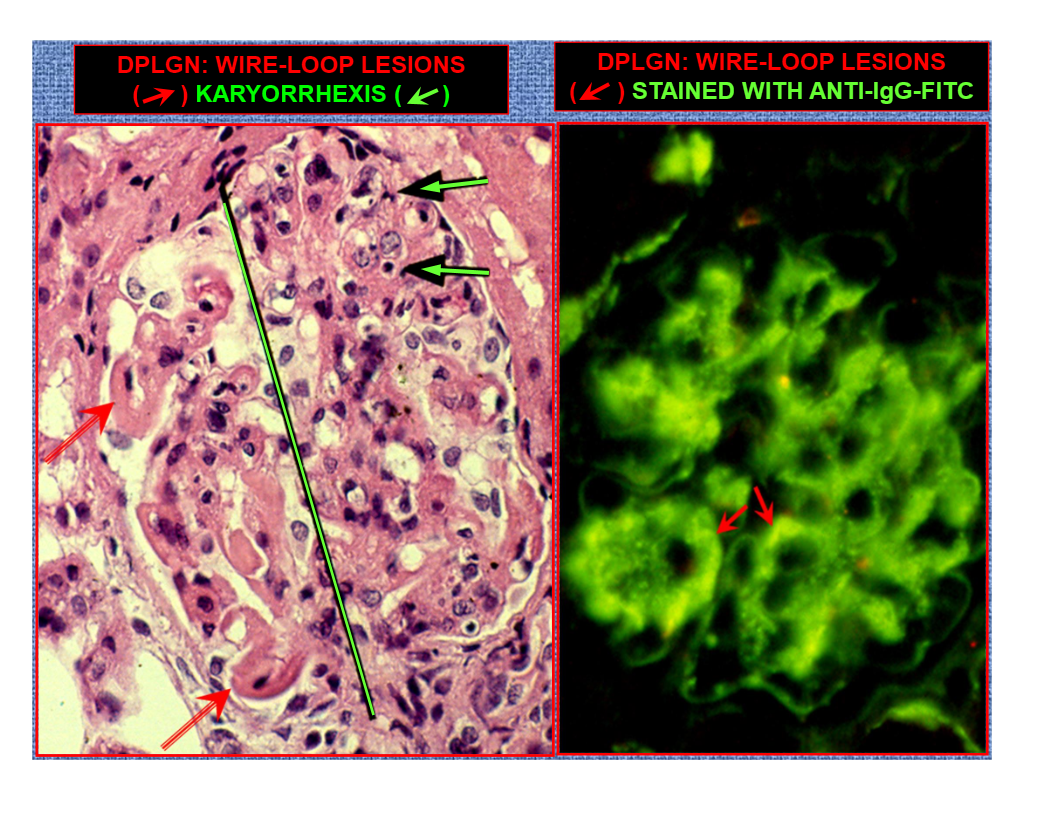 What are the histological findings of diffuse lupus proliferative glomerulo-nephritis (DPLGN)?