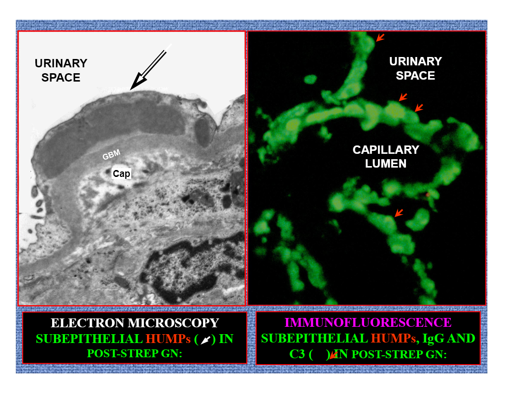 C3 alternate and classical pathways involved (low levesl of complement in blood)