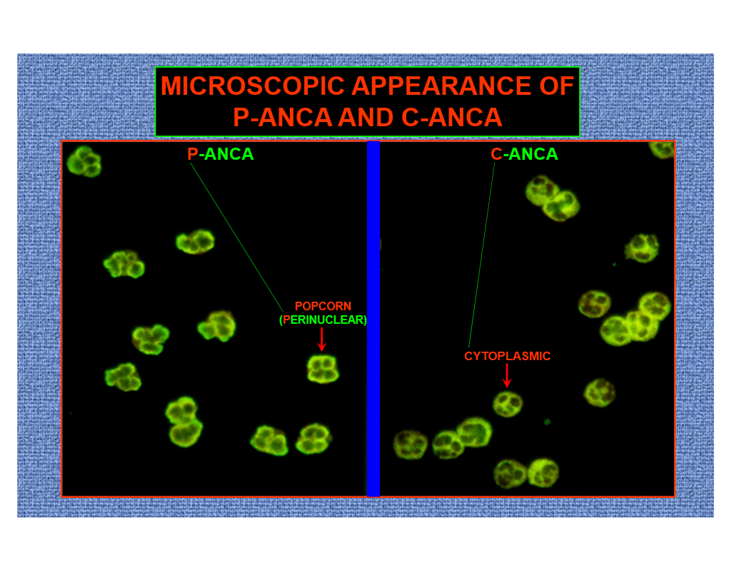 P-ANCA is perinuclear and is found in only microscopic vasculitis