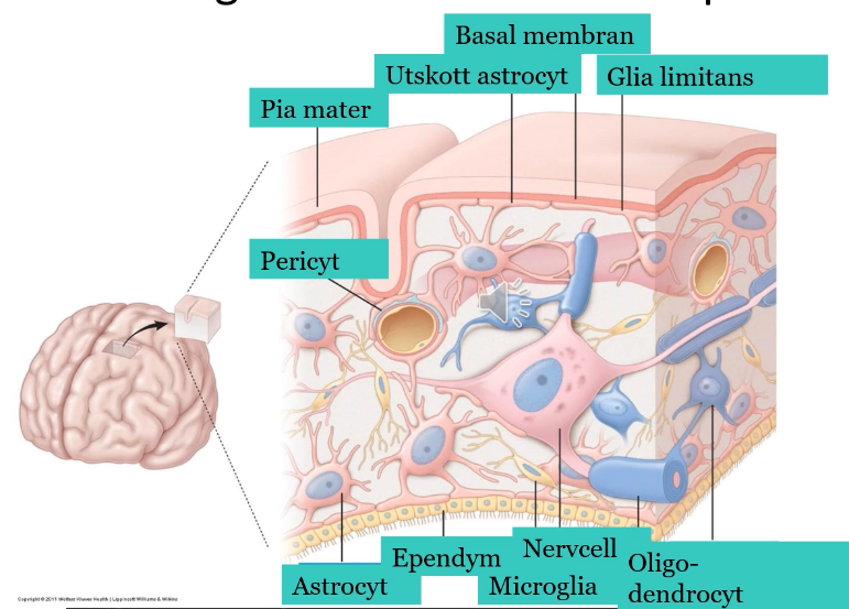 Gliaceller (utgör stöd för nervcellerna)