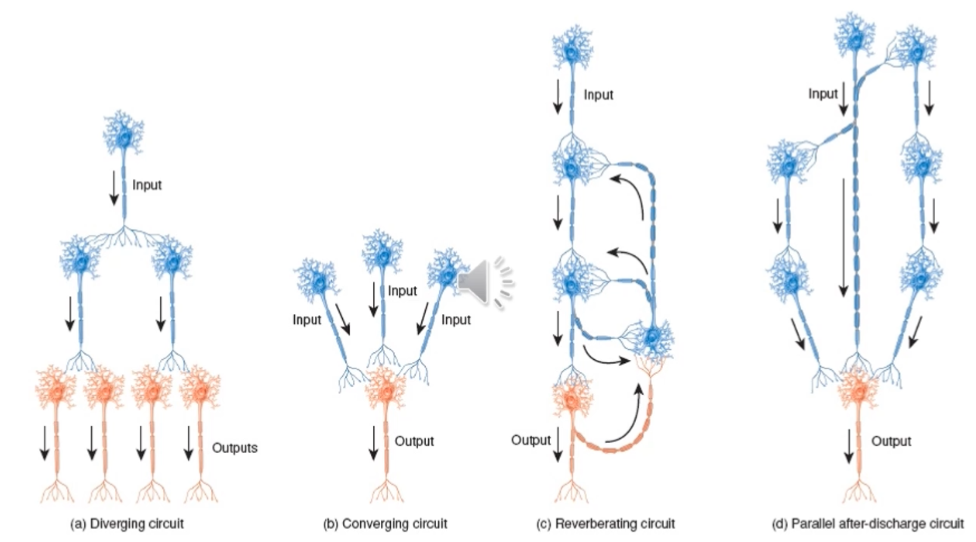 Ofta arbetar nervceller och axon i nätverk, vad innebär konvergens?