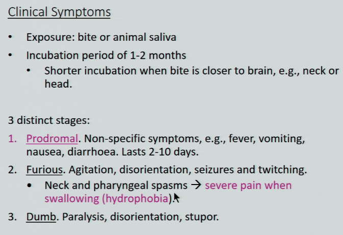 describe the 3 stages of Rabies encephalitis
