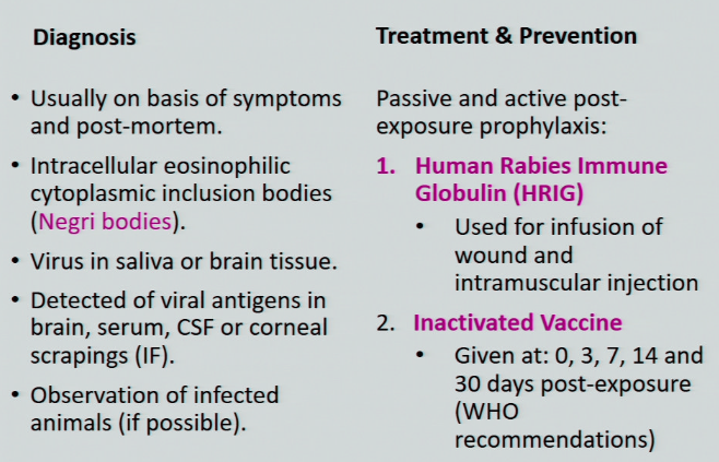 list the 2 methods of treating Rabies