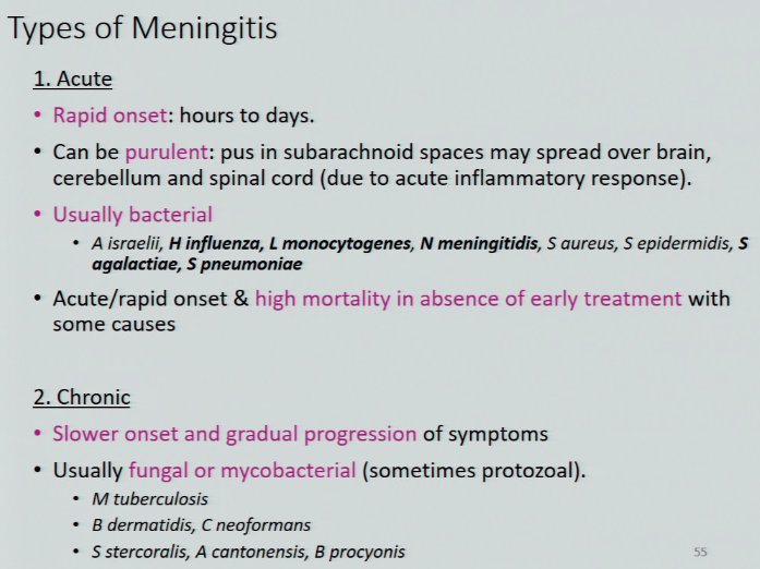 describe acute vs. chronic meningitis