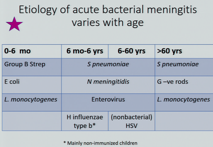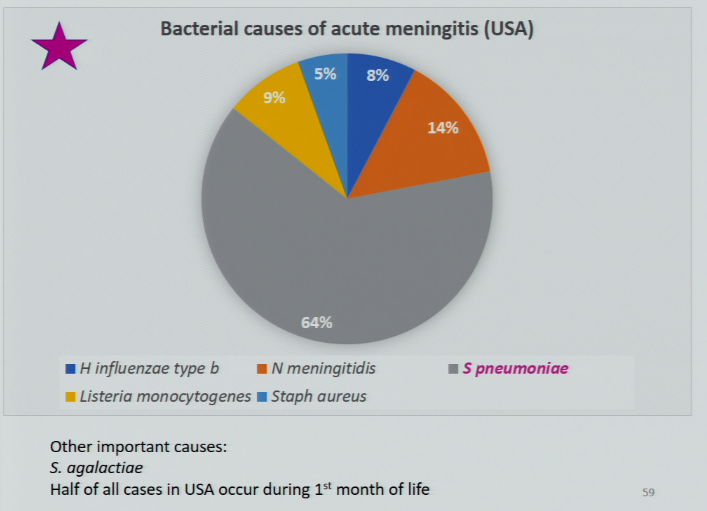 list the top causes of bacterial meningitis in people 6-60 yrs of age