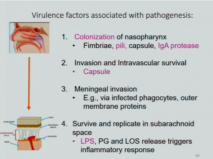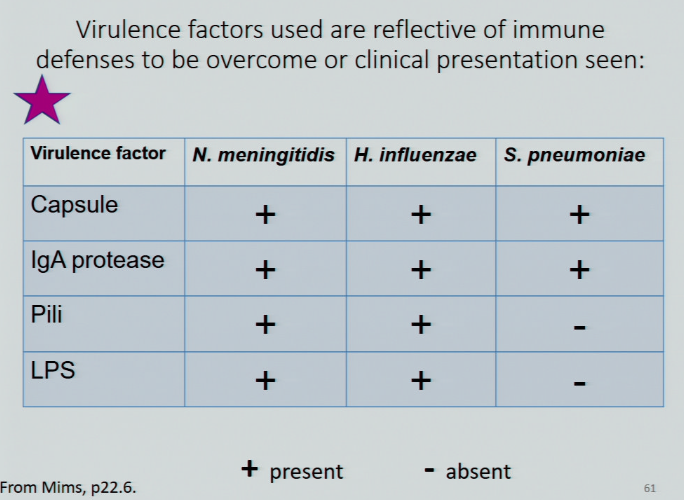 describe the virulence factors in N. meningitidis, H. influenzae, and S. pneumoniae