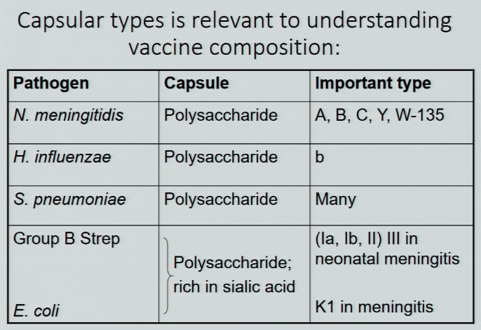 describe the capsular types among meningitis-causing pathogens