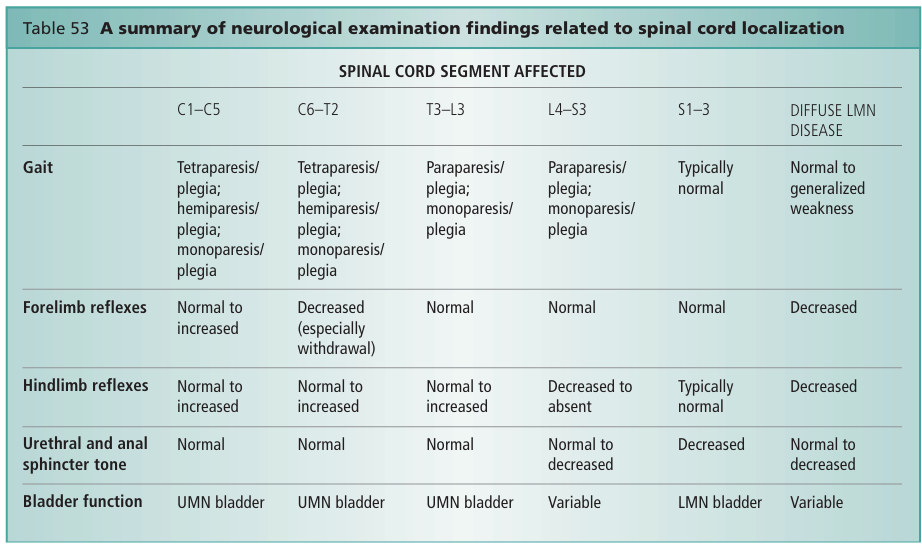 UMN - cranial to S1