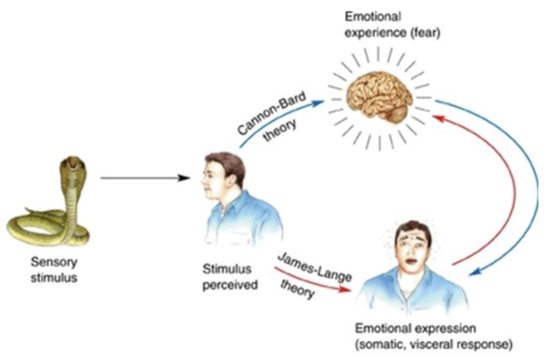 The James-Lange theory: emotion experienced in response to physiological changes in body