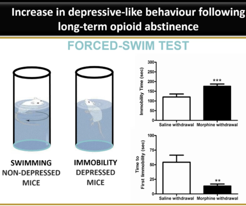 It was concluded that morphine withdrawal induced social interaction deficits in mice which is in agreement with the situation of opioid abstinent humans. Anxiety-like and depressive-like behaviour.