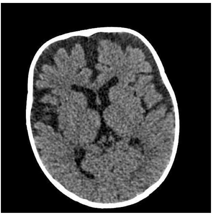 Tc de crânio com reconstrução tridimensional (3D) e baixa radiação.