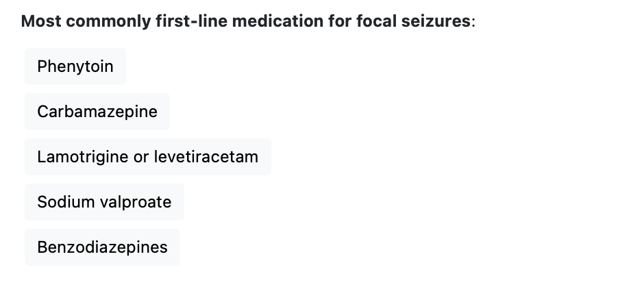 Most commonly first-line medication for focal seizures - lamotrigine or levetiracetam