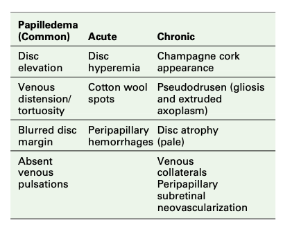 the optic nerve head and usually results in bilateral optic disc swelling. The optic disc may be markedly elevated, with hemorrhages of the nerve head and surrounding retina. Usually, there is no visual loss acutely, except for enlargement of the physiologic blind spot from elevation and compression of the peripapillary retina. Chronic papilledema can cause loss of the peripheral visual field, with central vision affected only very late in its course. IIH typically occurs in obese women between puberty and men- opause. Men and non-obese women frequently harbor identifiable causes of elevated intracranial hypertension (e.g. Chiari malformation, occult dural arteriovenous malformation, dural venous sinus occlusion, sleep apnea) and should not be con- sidered to have IIH until an exhaustive clinical investigation confirms that there is no identifiable cause. M Fundoscopic features of papilledema are highlighted below.