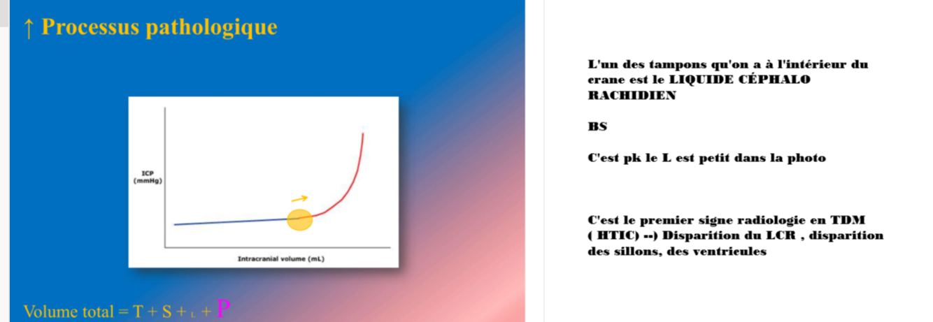 v/f la relation entre le volume intracranial et la pression intracranienne est linéaire