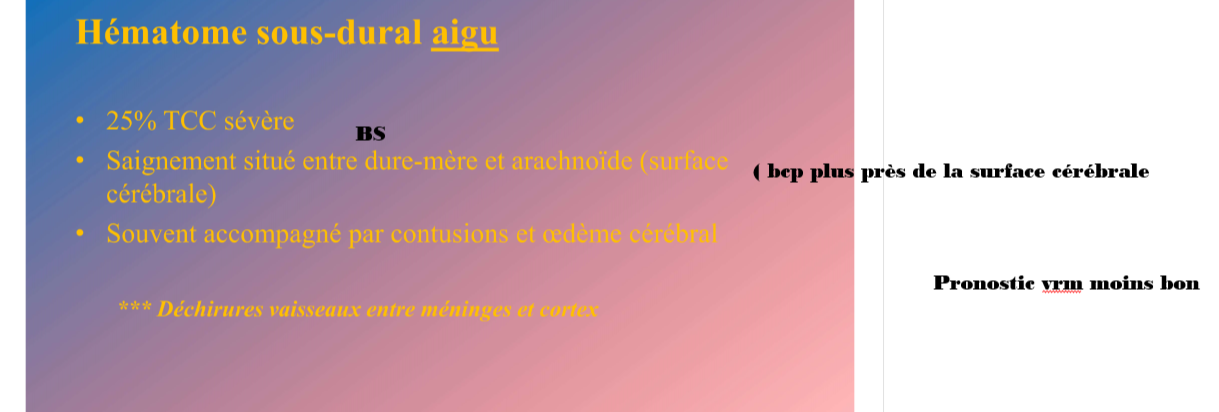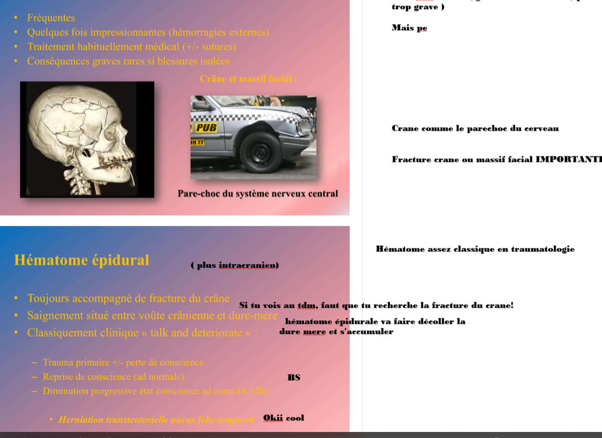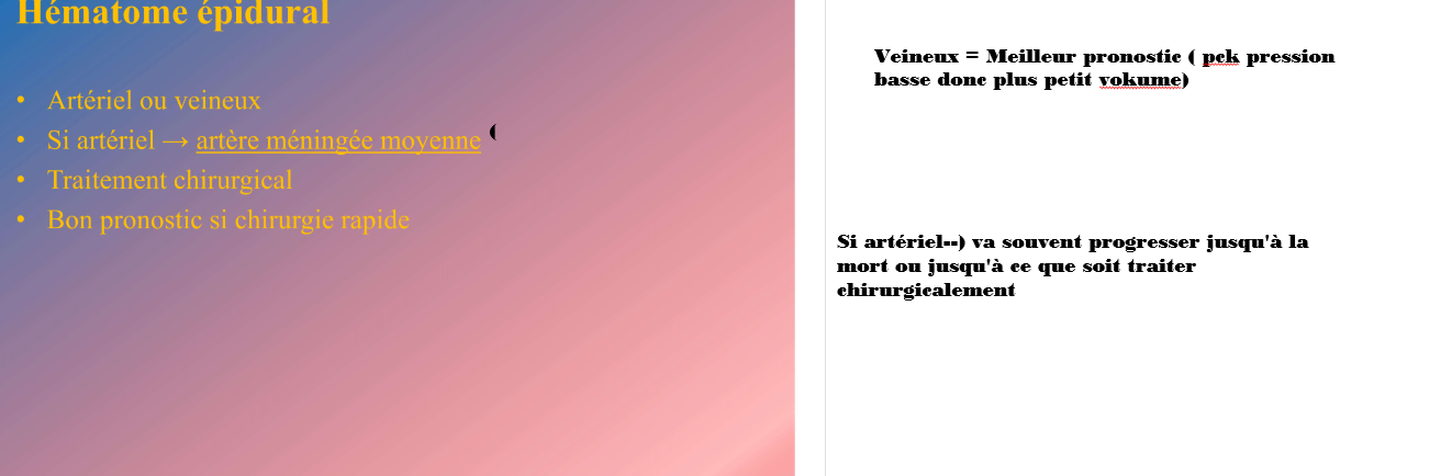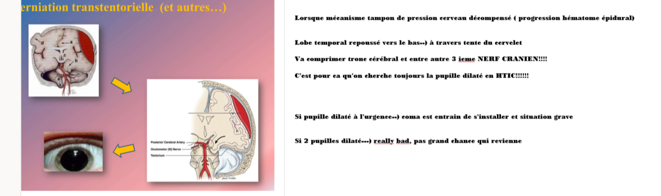 à l’urgence si tu suspecte hématome épidurale, quesque tu va rechercher qui veut dire que faut que t,agisse vrm rapidement