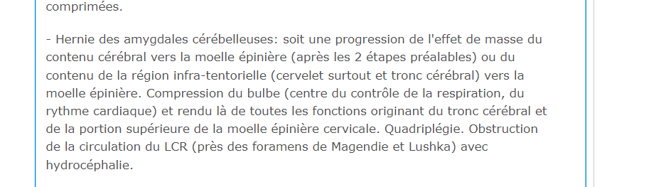 avec herniation des amygdales cerebelleuse, donne des conséquences