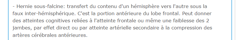donne deux trucs possible en herniation subfalcine ( symptomes)
