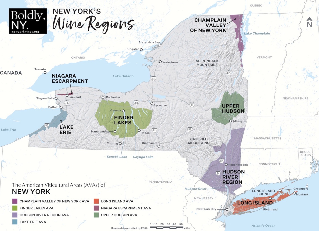 Hudson River, Lake Erie, Long Island, Finger Lakes