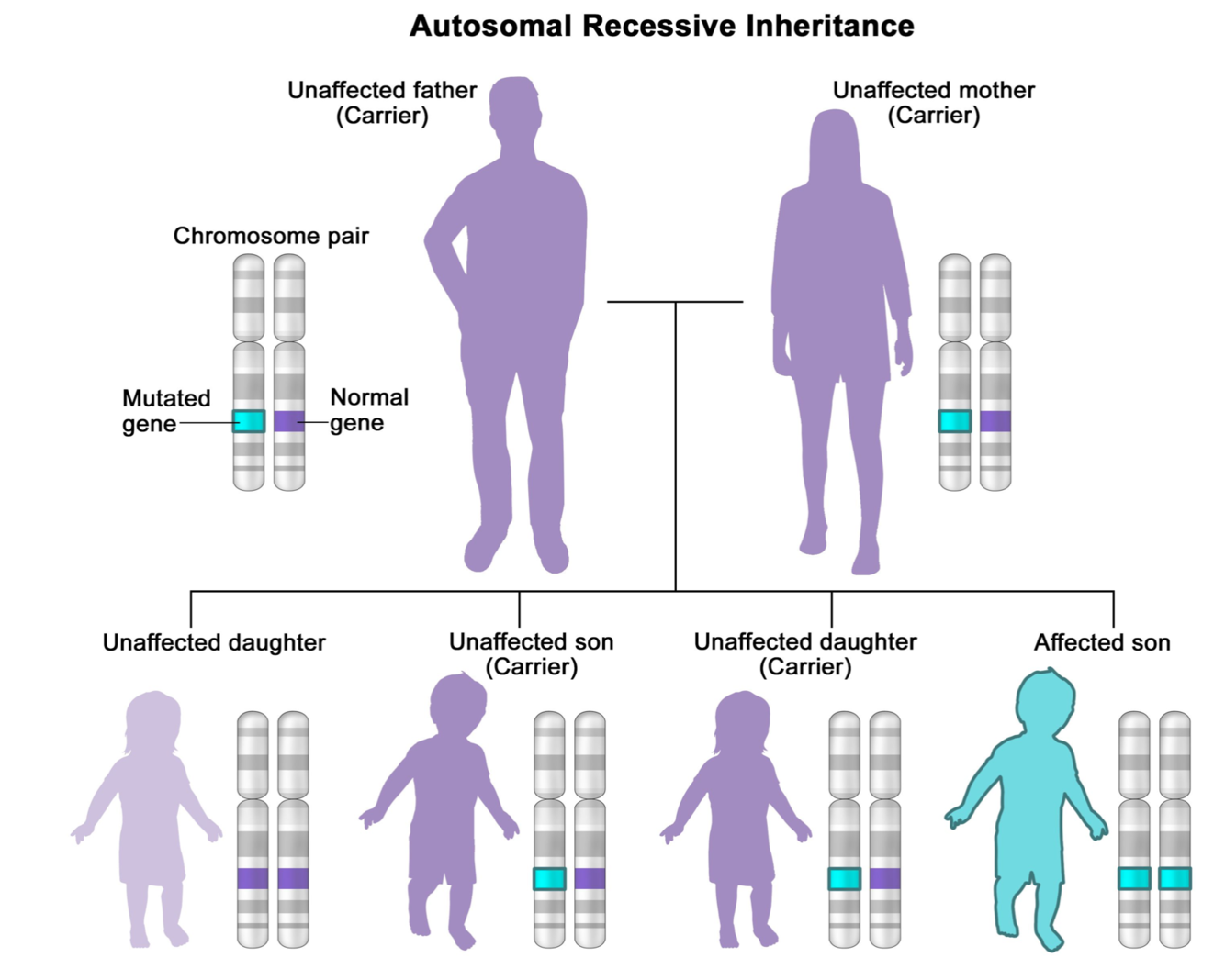 What does autosomal recessive inheritance look like?