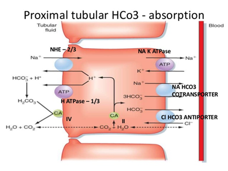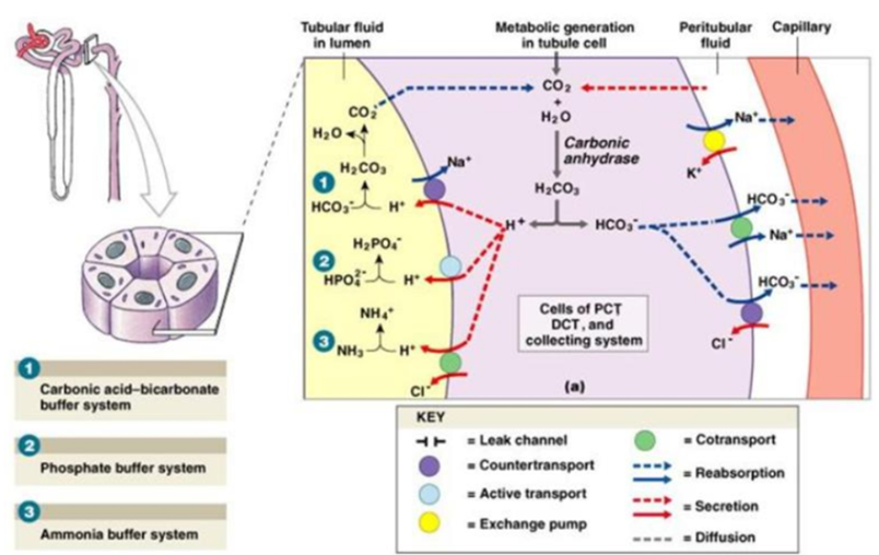 Förklara hur kolsyra-bikarbonatbufferten fungerar i njure