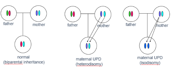 Isodisomy (2 copies of the exact same chromsome are inherited)