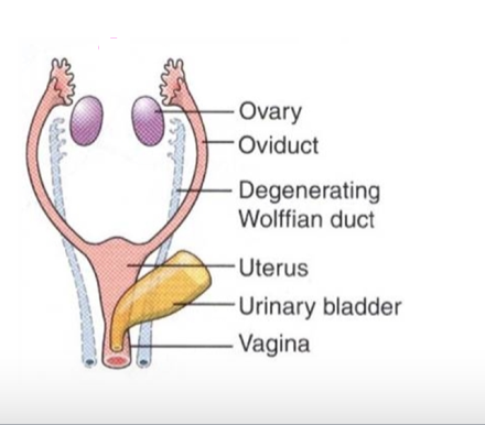 -lack of stimulation by testosterone in female leads to regresssion of the duct.