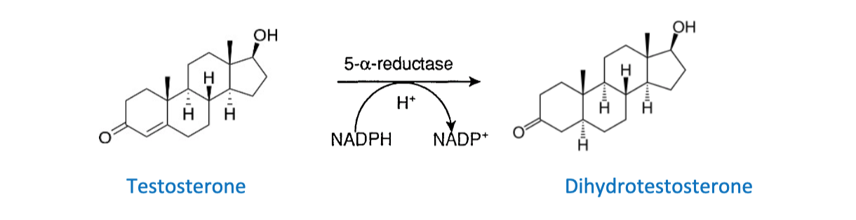-testosterone => dihydrotestosterone (DHT) by this enzyme
