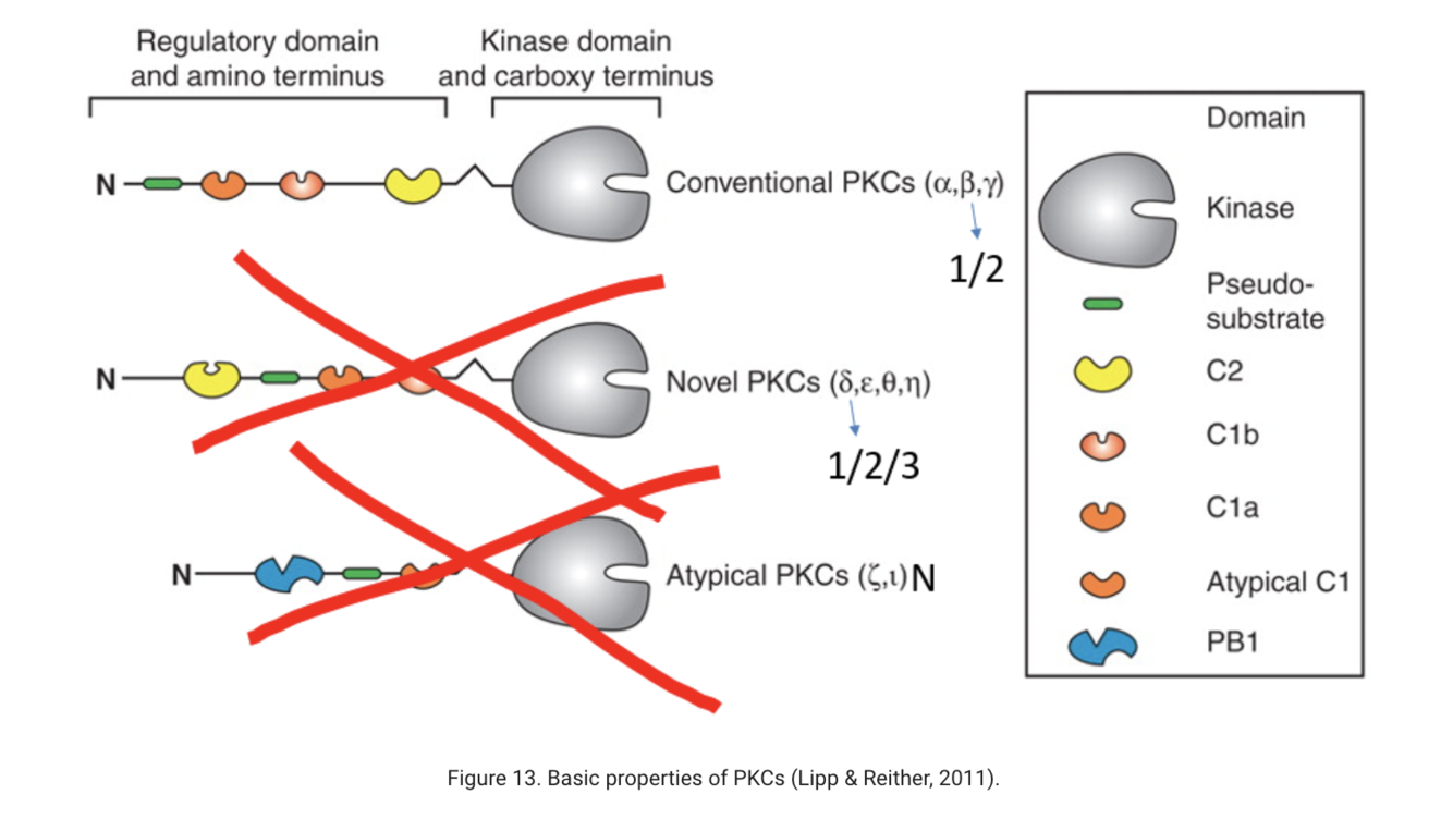 C1a: following C2 binding to membrane partners, bind to DAG forcing the pseudo substrate domain from the kinase domain leading to activation