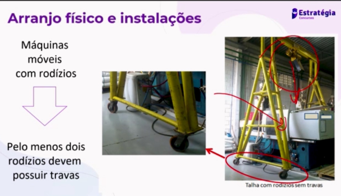 Nas máquinas móveis que possuem rodízios, pelo menos um deles deve possuir travas.